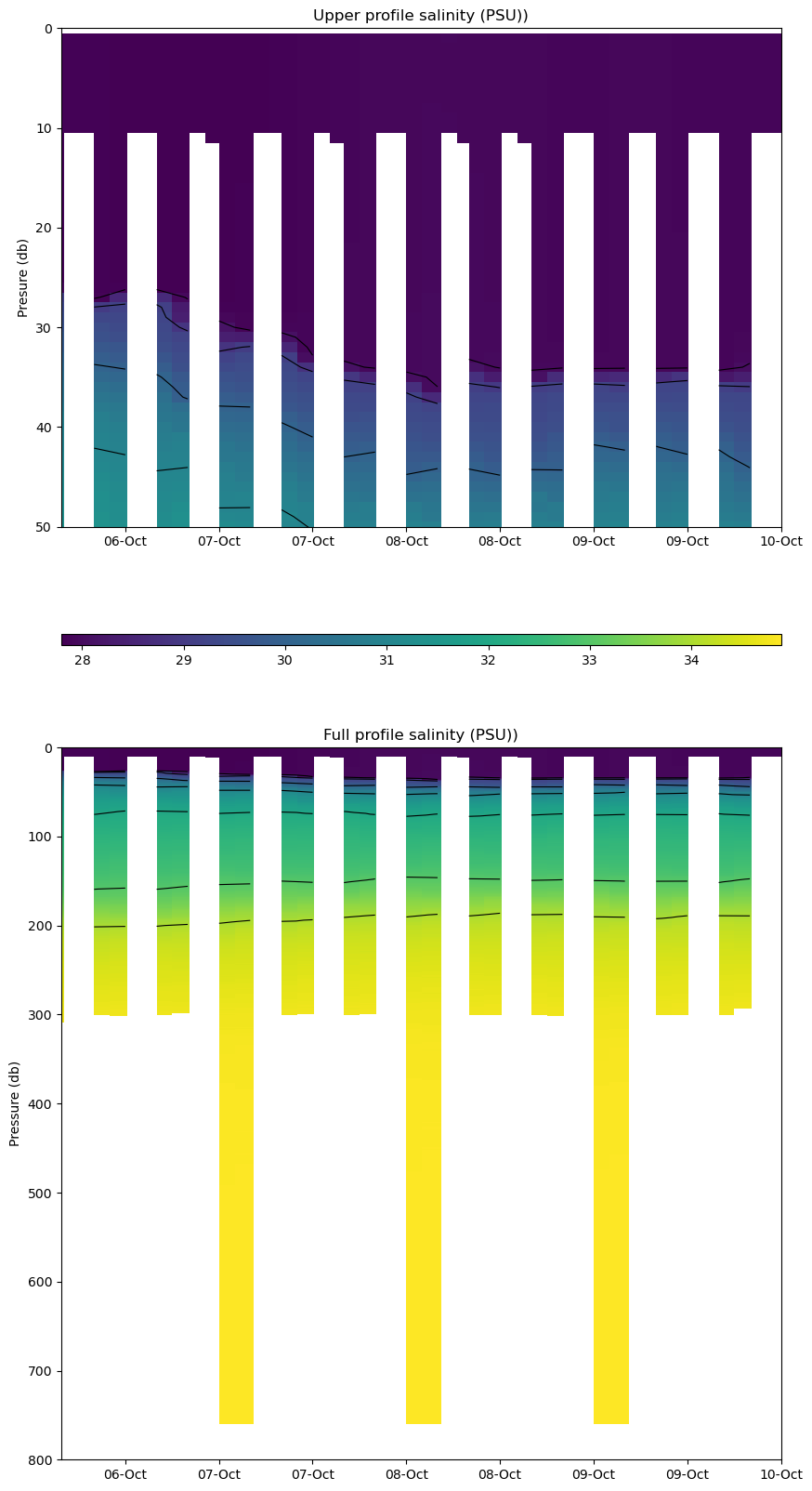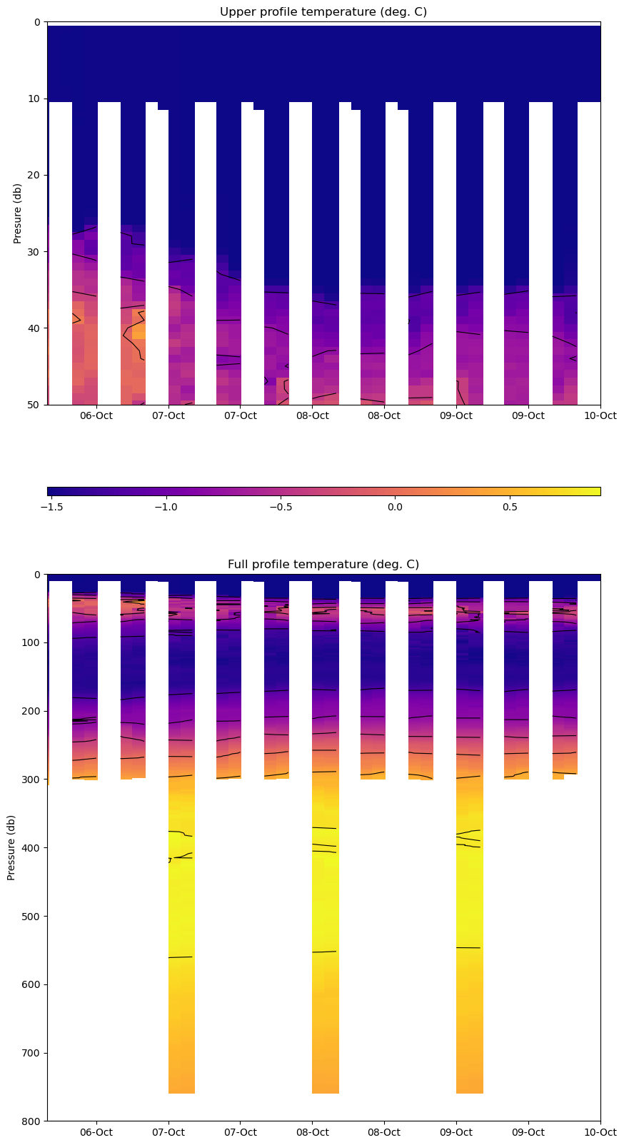 Temperature Contour Plot | Salinity Contour Plot | Profile History Plot |