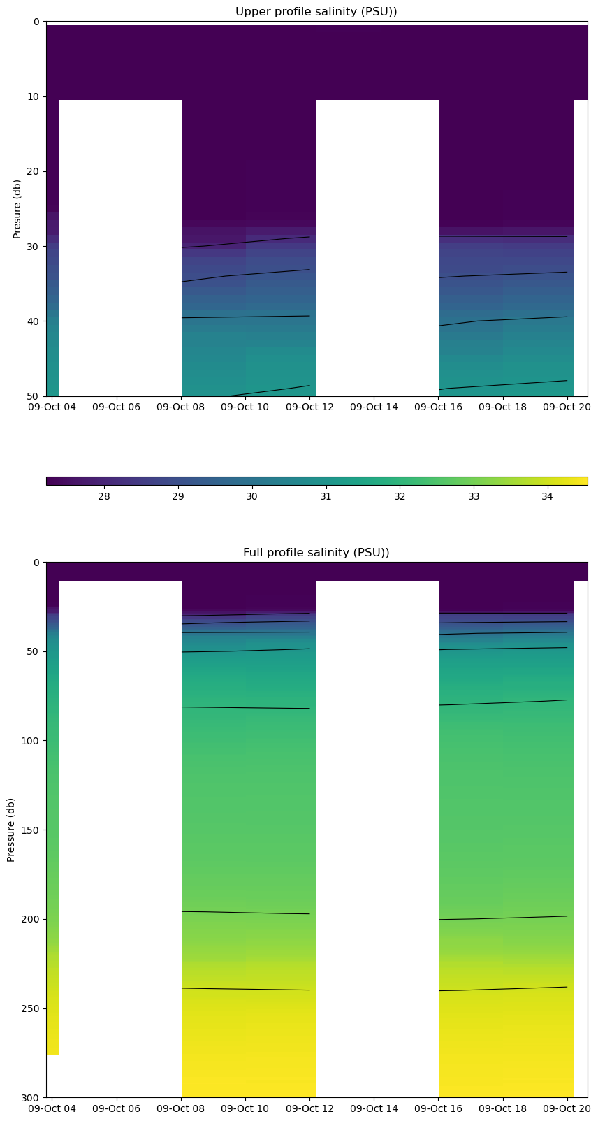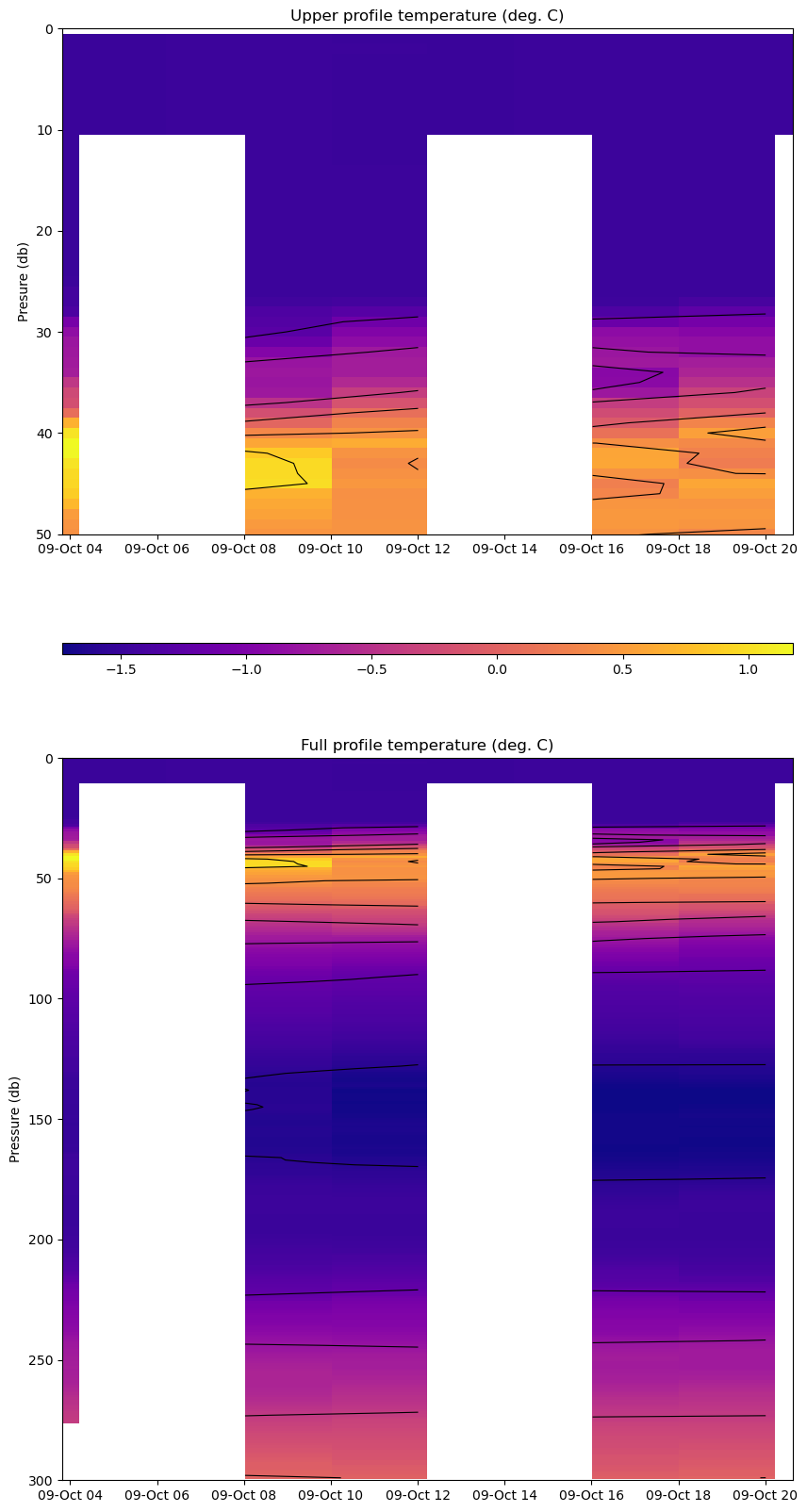 Temperature Contour Plot | Salinity Contour Plot | Profile History Plot |